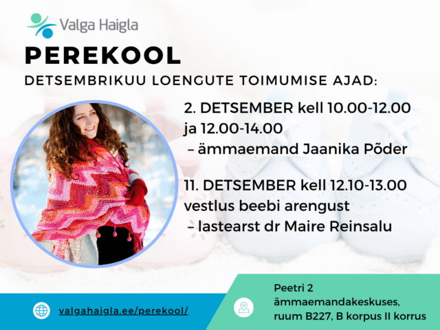Perekooli loengud jõulukuul toimuvad 2. ja 11. kuupäeval. Oodatud on kõik lapseootel naised...